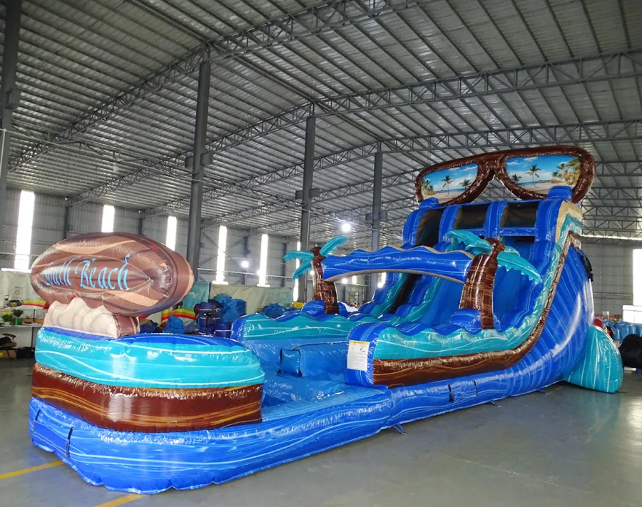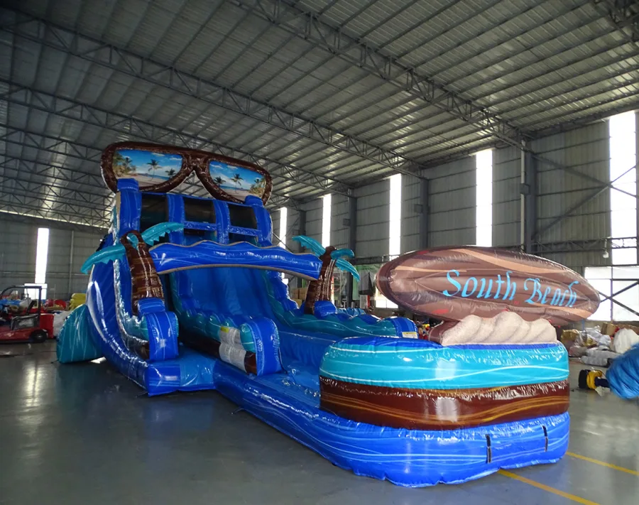 With two lanes, the 18′ South Beach Water Slide allows two participants to slide side by side, adding a friendly competition element to the experience. Who will reach the splash zone first? The thrill of racing down the water slide will keep everyone entertained and eager for more.